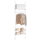 Acest garderobă este echipat cu un vestiar cu ușă și trei rafturi, perfect pentru depozitarea accesoriilor pentru baie