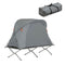 Suprafața perdelei este în poliester în 185t cu acoperire PU (nivel de impermeabilizare a stratului extern: 1500 mm) pentru un bloc eficient și antioxidant de raze UV dăunătoare. Structura metalică și din fibră de sticlă, pătuț rezistent la Oxford Nylon. Amenit în PE pe fundul perdelei. Patul de camping cu saltea de acoperiș și aer este absolut confortabil pentru dormit, datorită acoperirii țesăturii de înaltă calitate și a sacului de dormit în poliester.