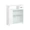 Mobilierul Sublavabo este soluția perfectă pentru a adăuga spațiu în baie. Sculparea în formă de u vă permite să o așezați sub chiuvetă, astfel încât să puteți avea un spațiu suplimentar pentru a vă depozita produsele. Proiectarea cu un raft deschis și un vestiar cu 2 -door vă permite să organizați totul mai bine.