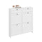 [STIL MODERN ȘI MINIMALIST]: Cu designul sau elegant alb și structura din lemn, acest suport pentru pantofi de intrare se adaptează la diverse stiluri de mobilier, de la modern la nordic. Mânerele negre contrastează frumos cu albul, adăugând o notă de stil.